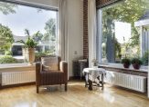 – Houten kozijnen met isolerende beglazing (m.u.v. voordeur);