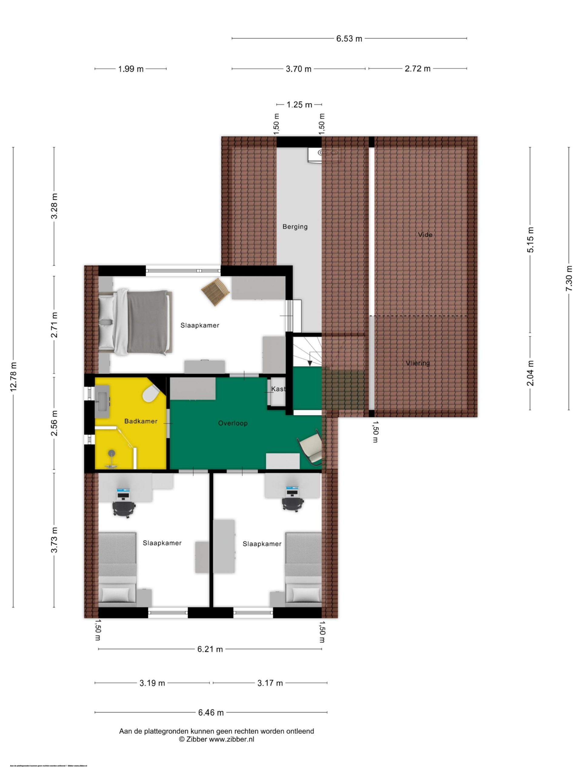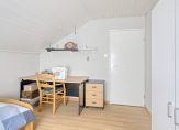 De master bedroom is aan de achterzijde, met mooi uitzicht naar de tuin, en de slaapkamers aan de voorzijde zijn qua grootte nagenoeg identiek. Wat opvalt zijn de grote ramen, laminaatvloer en de schuine dakvlakken met een hoge nok. In de master bedroom is een deur naar de berging, boven de bijkeuken. Hier hangt de HR-ketel, en de rest van de ruimte kan worden verbouwd tot kleedruimte of werk-/studeerplek.
