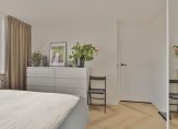 Aan de overloop grenzen drie slaapkamers, waarvan twee groot genoeg zijn om in te richten met een tweepersoonsbed. De derde slaapkamer is een prima werkkamer, hobbyruimte of kinderkamer. Ook op deze verdieping zie je stucwerk, inbouwverlichting en een visgraat pvc-vloer.