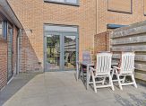 Niet alleen de woning, maar ook de tuin heeft een strakke uitstraling en is goed onderhouden. Een breed pad verbindt het trottoir met de entree en de achtertuin, gesitueerd op het oosten. In de achtertuin zie je een mooi gazon, gevarieerde beplanting, een groot zonneterras en een houten berging met overdekt terras. Dit is een heerlijke plek om buiten te zitten, met uitzicht naar het groen in de tuin.