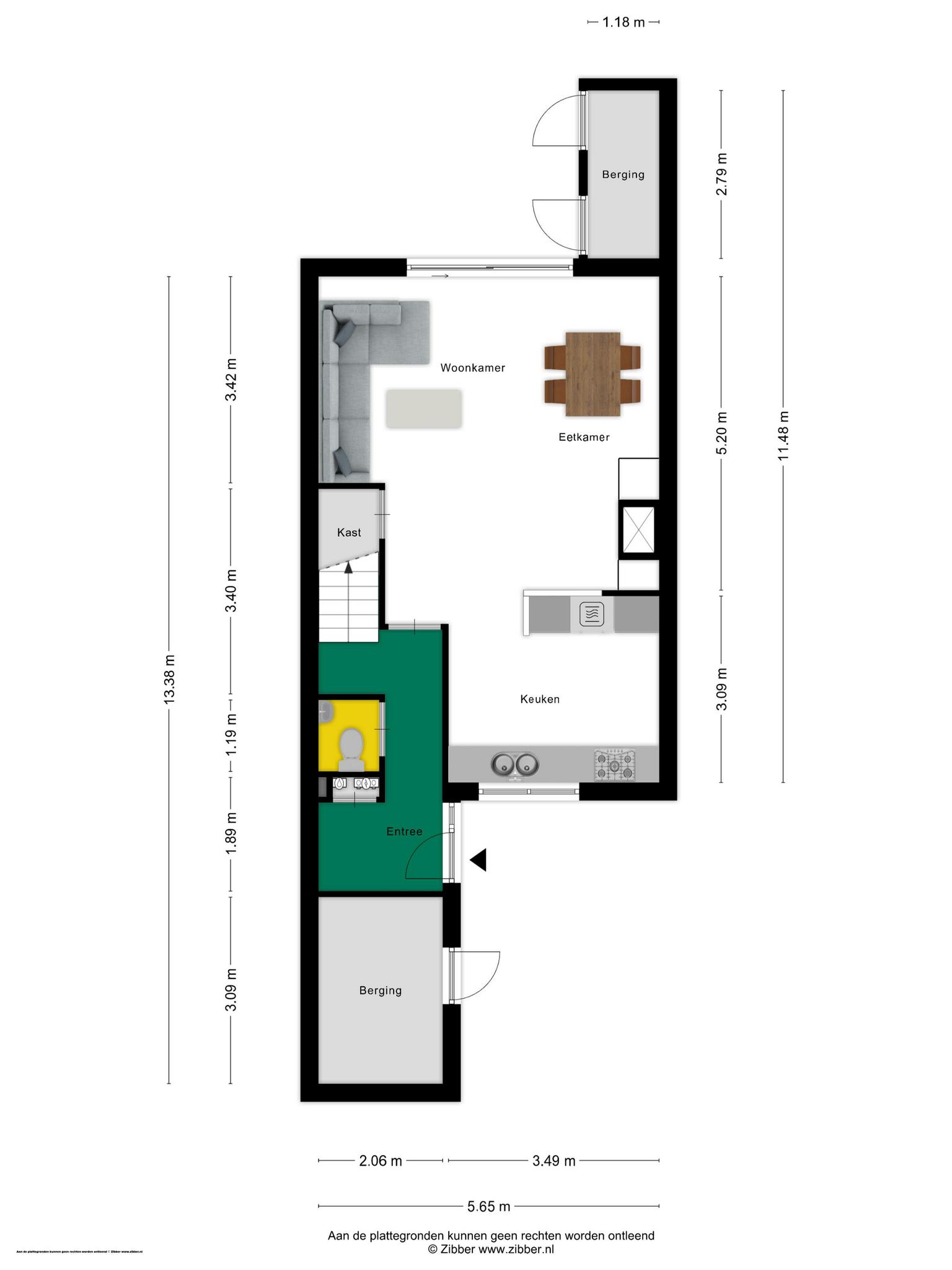In de aanbouw aan de voorzijde is de entree van deze ruime woning. Via de voordeur loop je de ruime hal in met de trap naar de eerste verdieping. In de hal zit de meterkast en het toilet met fonteintje.
