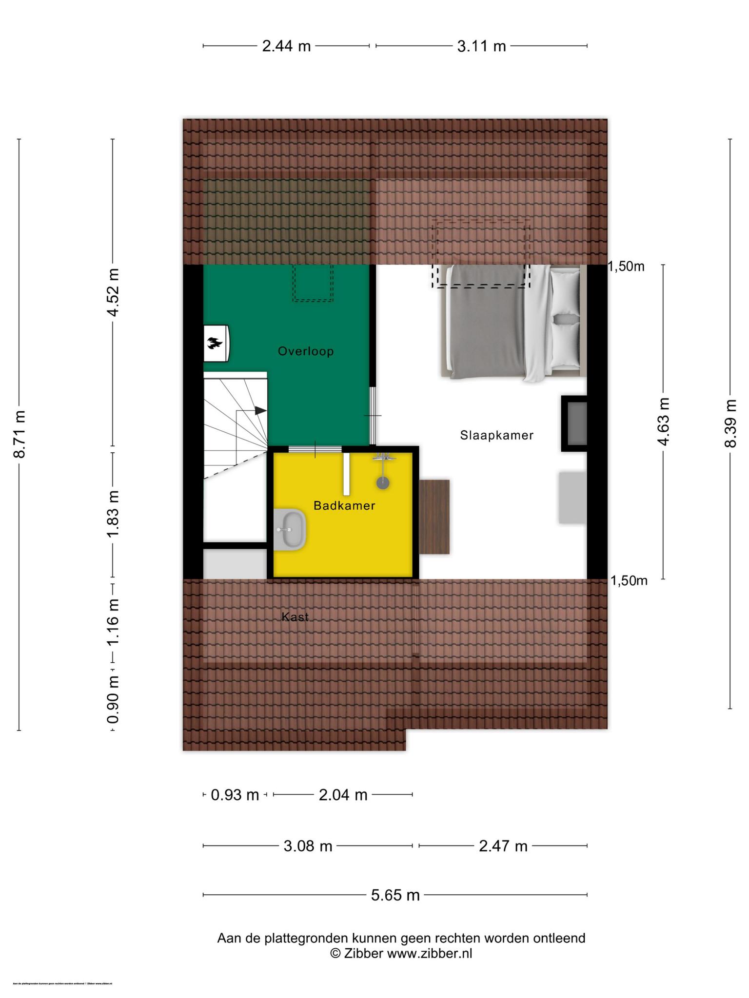 Verder zijn er een ruime slaapkamer en een tweede badkamer op deze verdieping. De badkamer is ingedeeld met een douche en wastafel. In de slaapkamer zorgt een groot dakraam voor veel lichtinval.