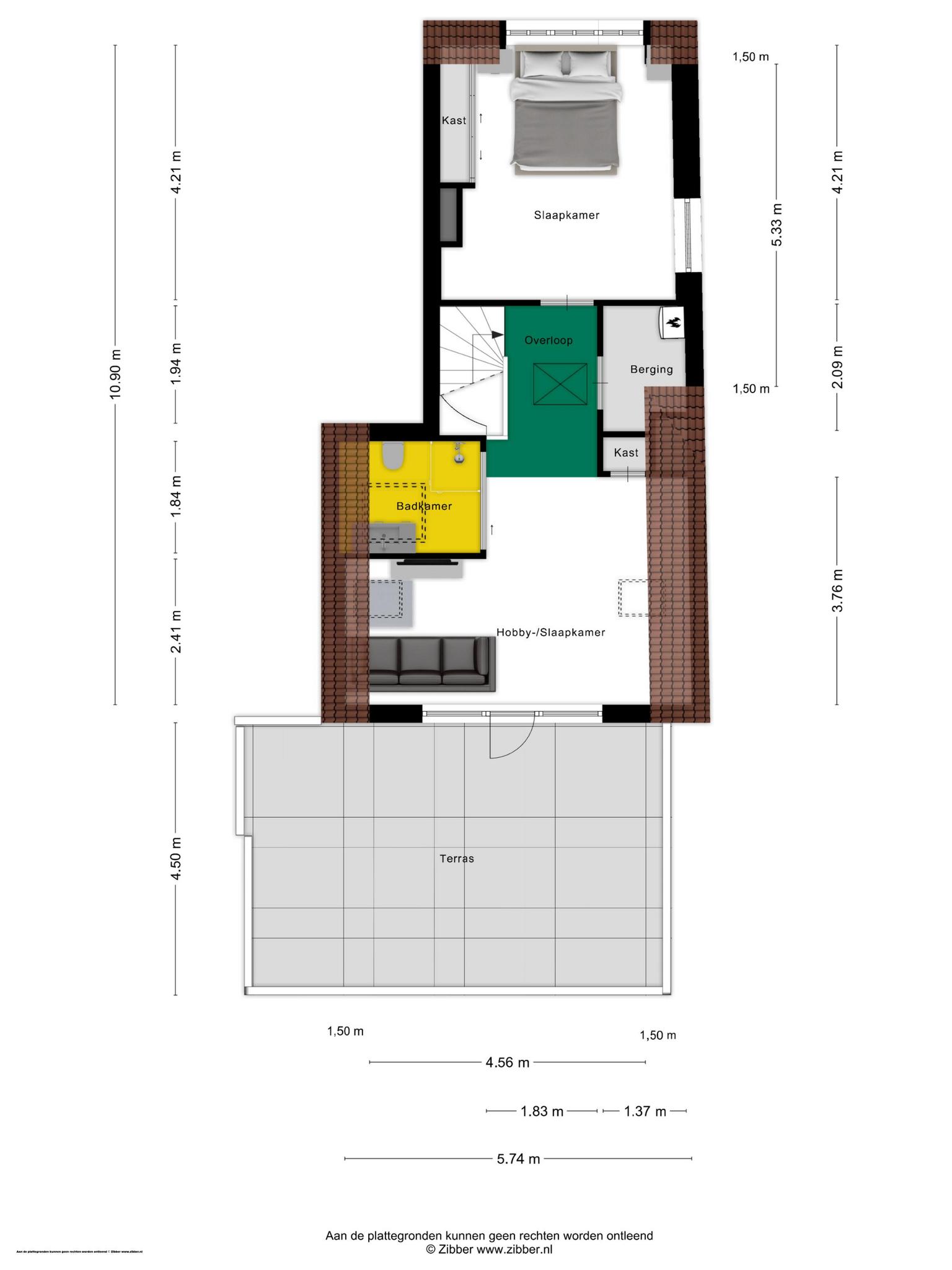 Aan de voorzijde van de woning is de tweede slaapkamer, met een brede dakkapel en een vaste kastenwand. Vanaf de overloop is een berging bereikbaar, waar tevens de CV-ketel gesitueerd is.