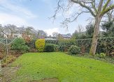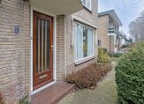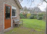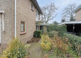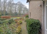 Als eerste noemen we de oprit, waar twee auto’s achter elkaar kunnen staan. De voor- en aansluitende zijtuin zijn aangelegd met gevarieerde beplanting, die deels groenblijvend is. Aan de rechterzijde is een poort, die toegang geeft tot de diepe achtertuin met twee terrassen en heerlijk veel groen en een grote notenboom.
