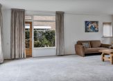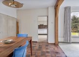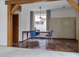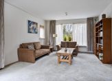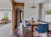 In de L-vormige woon-/eetkamer word je verrast door de ruimte, omdat de keuken in de jaren 70 naar een gerealiseerde aanbouw is verplaatst. Ramen aan vier zijden zorgen voor veel lichtinval en met een totale oppervlakte van circa 42 m2 is er genoeg ruimte voor een dubbele zithoek en een ruim eetgedeelte. De buitendeur geeft toegang tot een zonnig terras aan de rechterzijde van de woning.