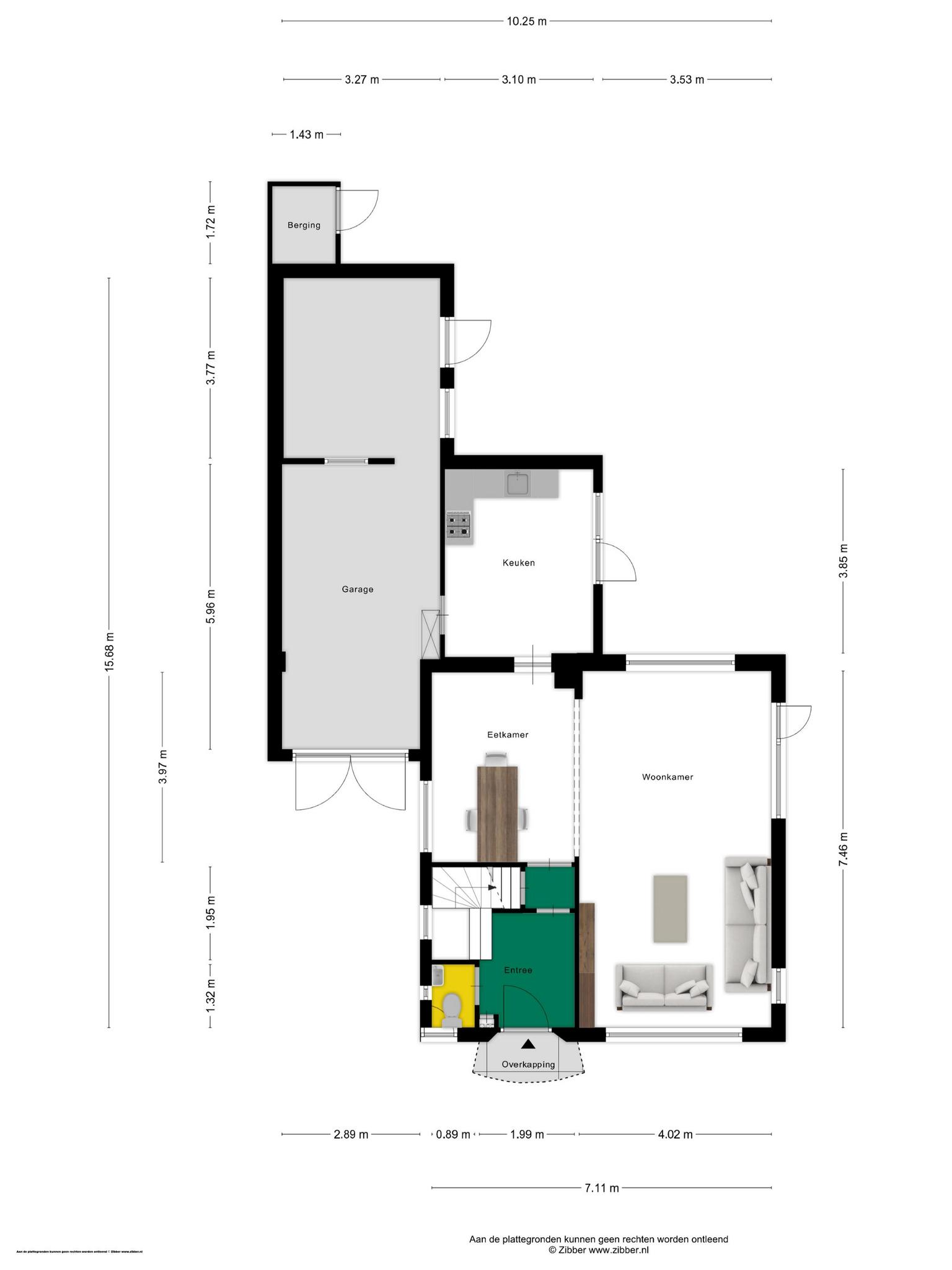 Boven de keuken en het voorste deel van de garage is een bergzolder (met dakraam) die vanuit de garage bereikbaar is.