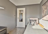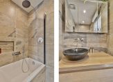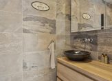 In 2021 is de badkamer geheel vernieuwd. Mooie wand- en vloertegels in aardetinten zijn gecombineerd met stijlvolle kranen en modern sanitair. De ruimte is ingedeeld met een bad-/douchecombinatie, wastafelmeubel en een spiegelkast.