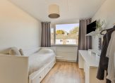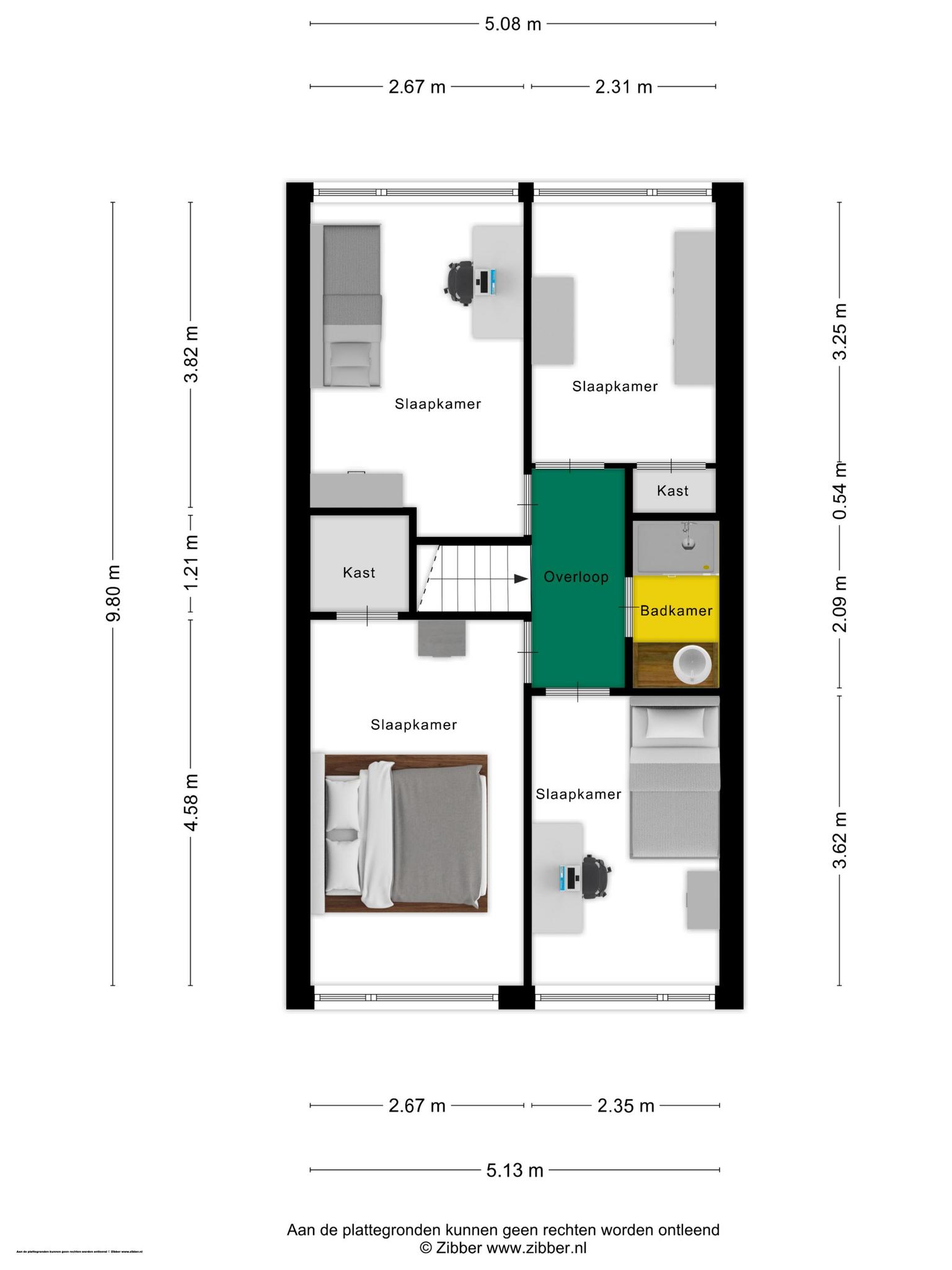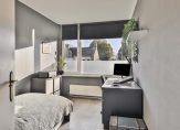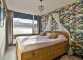 Sfeer en kleur zijn niet alleen op de begane grond, maar ook op de eerste verdieping volop aanwezig. Aan de overloop grenzen vier slaapkamers; twee aan de voorzijde en twee aan de achterzijde. Op de vloer ligt laminaat en twee slaapkamers, waarvan een in gebruik is als hoofdslaapkamer, zijn voorzien van een inbouwkast. Een airco op de overloop kan de gehele bovenverdieping koelen en verwarmen.