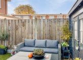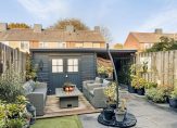 Heb je binnen alles gezien, dan is het tijd om de tuin te bewonderen. Groenblijvende beplanting in de voortuin zorgt voor privacy in huis en de achtertuin met twee terrassen is gesitueerd op het noorden. Dit betekent zowel zon als schaduw in de tuin, wat op een warme dag een groot voordeel is. De houten berging met overkapping biedt ruimte aan de fietsen en er is een poort naar de steeg.